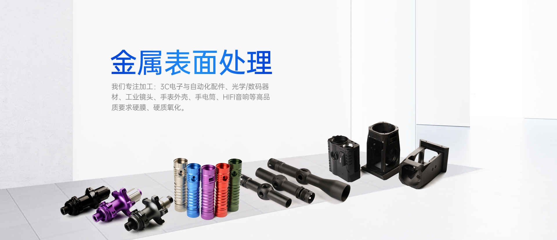 我們專注加工:3C電子與自動(dòng)化配件、光學(xué)/數(shù)碼器材、工業(yè)鏡頭、手表外殼、手電筒、HIFI音響等高品質(zhì)要求硬膜、硬質(zhì)氧化。成立近20年來,收獲了業(yè)界一定的口碑,是珠三角地區(qū)專業(yè)大型的硬膜、硬氧、普氧中心。